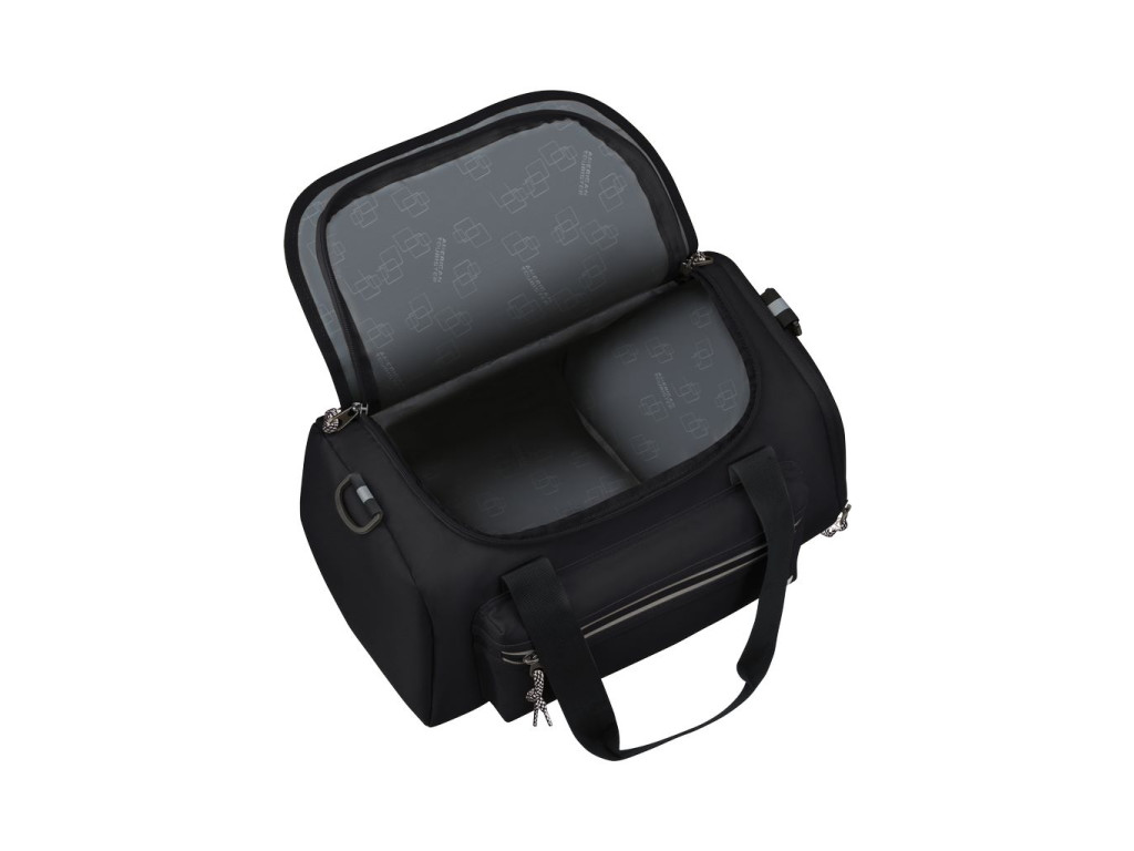Disponuje ľahko prístupnou prednou kapsou s reflexným zipsom na uloženie drobných predmetov a špeciálnou bočnou kapsou na topánky.