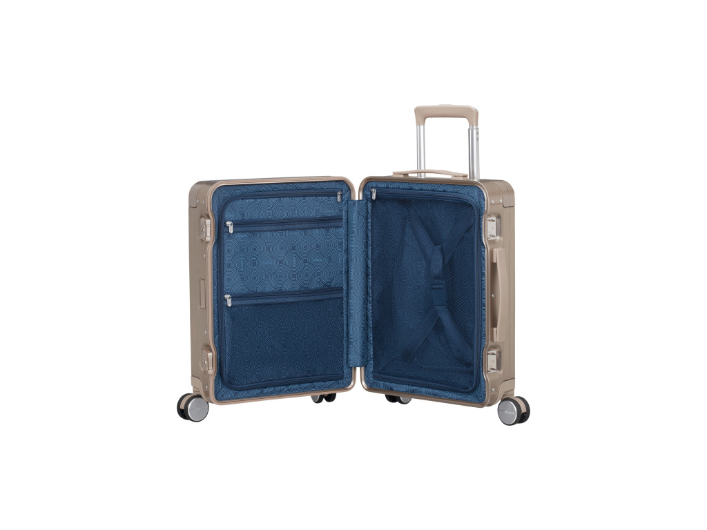 Ľahká, ale pevná hliníková konštrukcia poskytuje vynikajúcu ochranu vašich vecí pred nárazmi a poškodením. Štyri dvojité kolieska zabezpečujú hladkú jazdu v každom smere, a vďaka rozšíriteľnej kapacite získate ešte viac miesta na všetko, čo potrebujete. Integrovaný TSA zámok dodáva bezpečnosť vášmu cestovaniu, zatiaľ čo elegantný dizajn s kruhovými vzormi vynikne v dave.