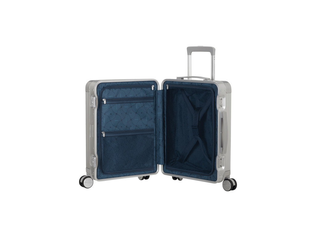 Ľahká, ale pevná hliníková konštrukcia poskytuje vynikajúcu ochranu vašich vecí pred nárazmi a poškodením. Štyri dvojité kolieska zabezpečujú hladkú jazdu v každom smere, a vďaka rozšíriteľnej kapacite získate ešte viac miesta na všetko, čo potrebujete. Integrovaný TSA zámok dodáva bezpečnosť vášmu cestovaniu, zatiaľ čo elegantný dizajn s kruhovými vzormi vynikne v dave.