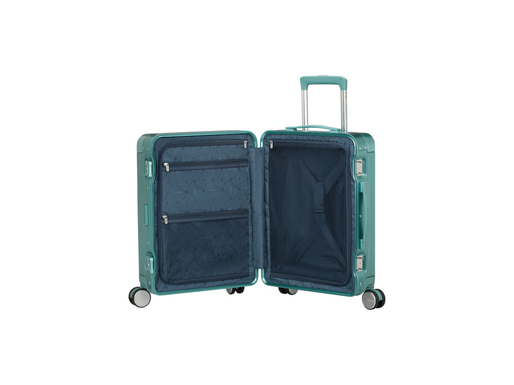 Ľahká, ale pevná hliníková konštrukcia poskytuje vynikajúcu ochranu vašich vecí pred nárazmi a poškodením. Štyri dvojité kolieska zabezpečujú hladkú jazdu v každom smere, a vďaka rozšíriteľnej kapacite získate ešte viac miesta na všetko, čo potrebujete. Integrovaný TSA zámok dodáva bezpečnosť vášmu cestovaniu, zatiaľ čo elegantný dizajn s kruhovými vzormi vynikne v dave.