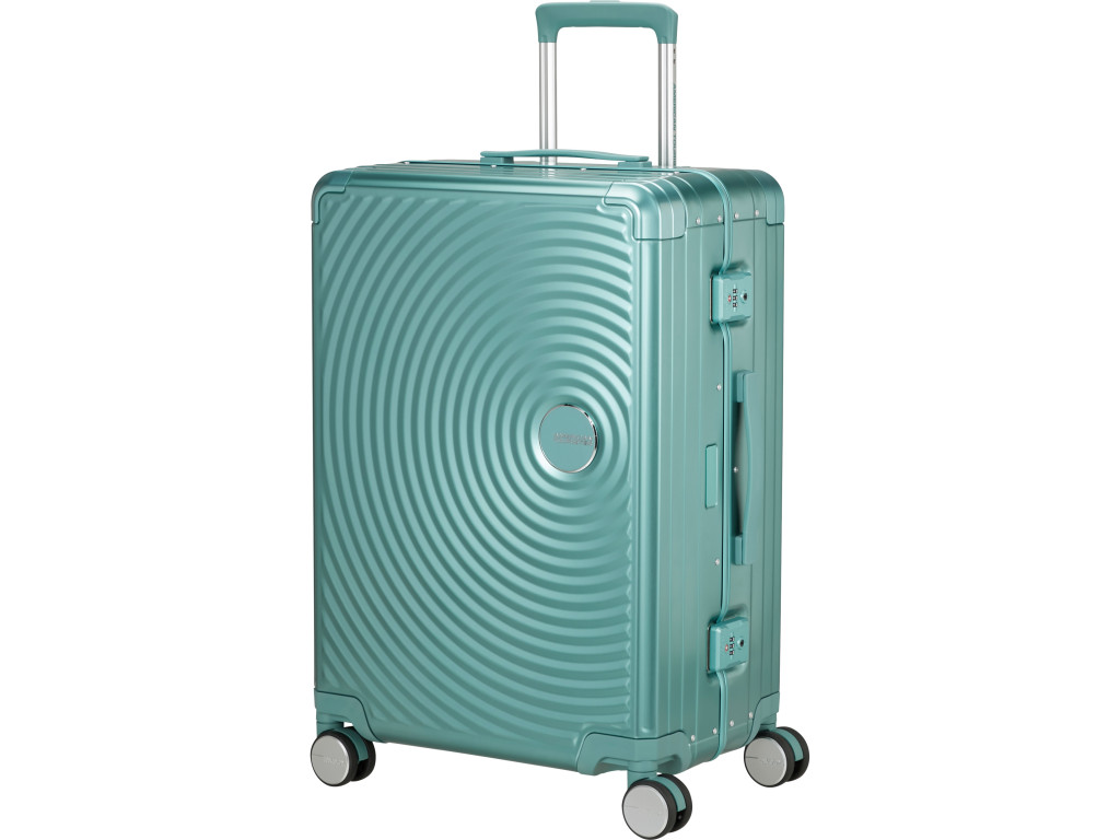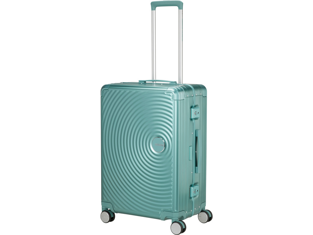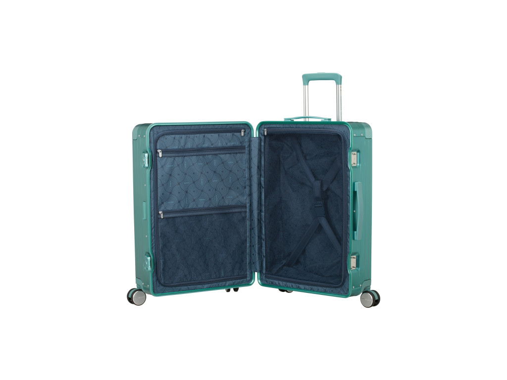 Ľahká, ale pevná hliníková konštrukcia poskytuje vynikajúcu ochranu vašich vecí pred nárazmi a poškodením. Štyri dvojité kolieska zabezpečujú hladkú jazdu v každom smere, a vďaka rozšíriteľnej kapacite získate ešte viac miesta na všetko, čo potrebujete. Integrovaný TSA zámok dodáva bezpečnosť vášmu cestovaniu, zatiaľ čo elegantný dizajn s kruhovými vzormi vynikne v dave.