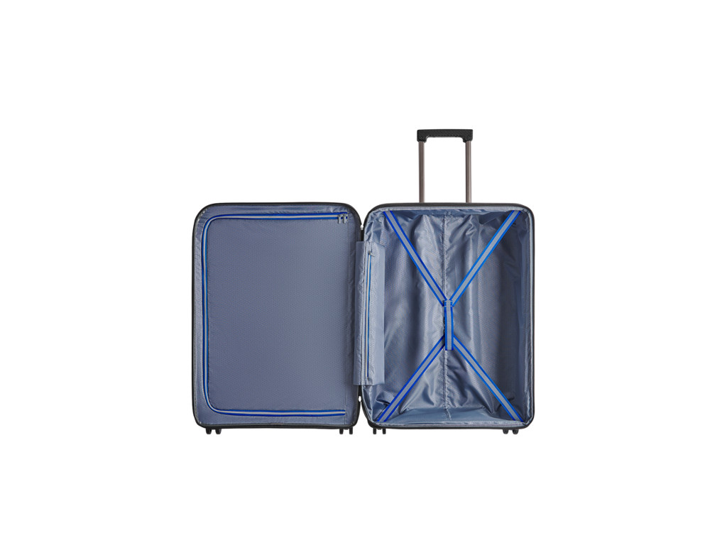 Vo vnútri kufra sú dva oddiely a vrecko. Prvý oddiel s upínacími popruhmi a druhý oddiel uzatvoriteľný zipsom, zaistia udržanie poriadku vo vašich veciach. Kolieska z kolekcie "silent 360" zabezpečia hladkú a tichú jazdu. Pri veľkostiach M a L je výhodou rozšíriteľnosť kufra, v prípade potreby navýšenia objemu.