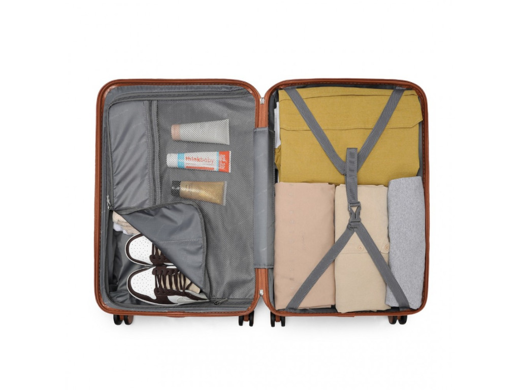 Kufor je vyrobený z polykarbonátovou vrstvou potiahnutým ABS s tichými dvojitými kolieskami, hliníkovou výsuvnou rukoväťou alebo TSA číselným zámkom. ABS materiál ponúka odolnosť proti poškriabaniu a je vhodný do nízkych teplôt. ABS materiál nie je tak pružný ako polypropylén, ale pre občasné cesty je plne postačujúci.