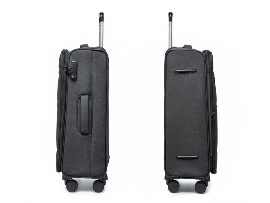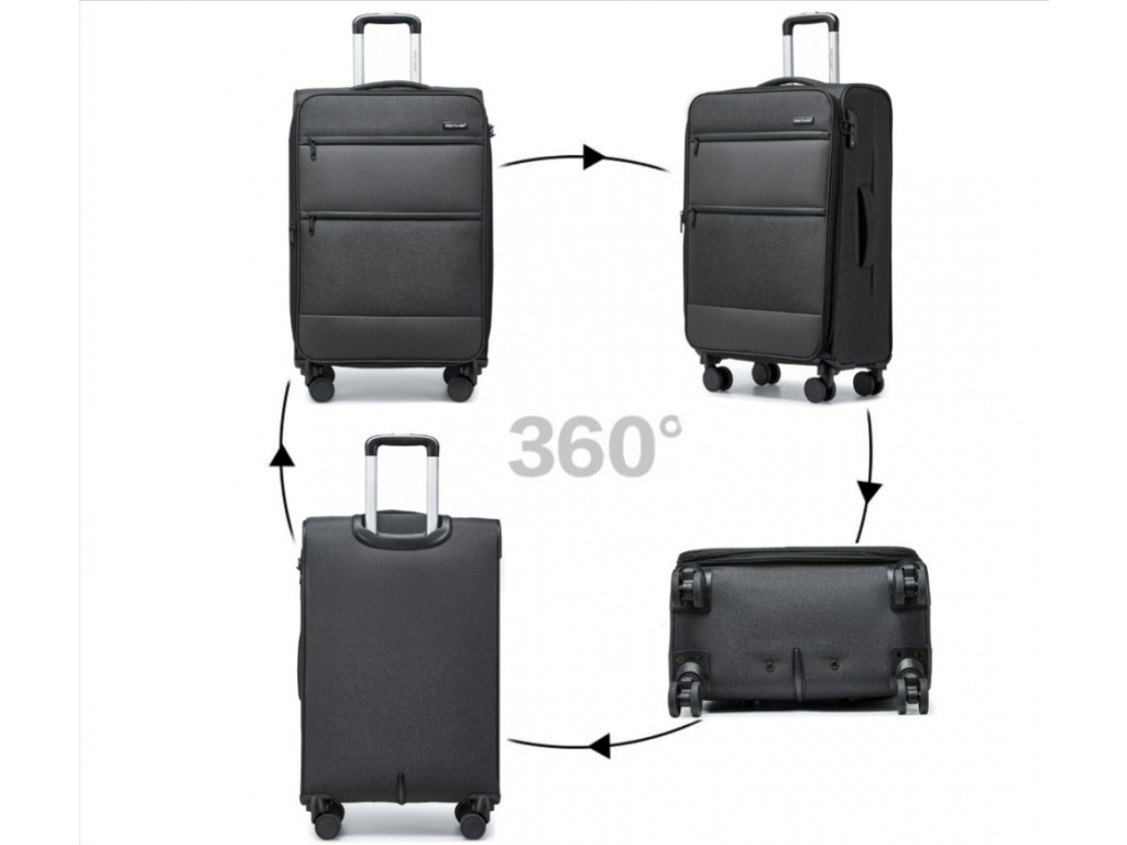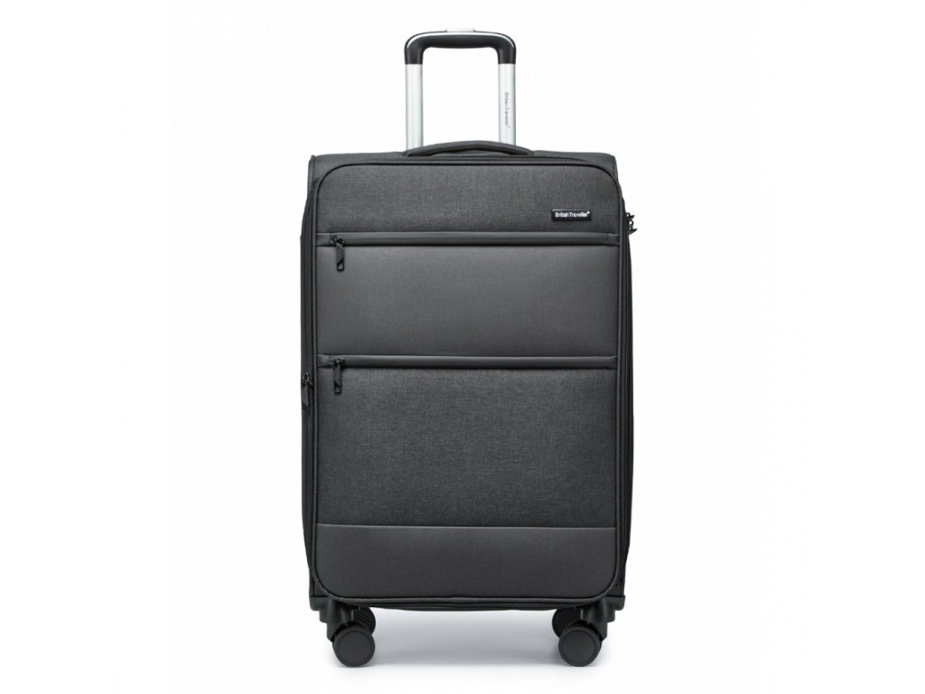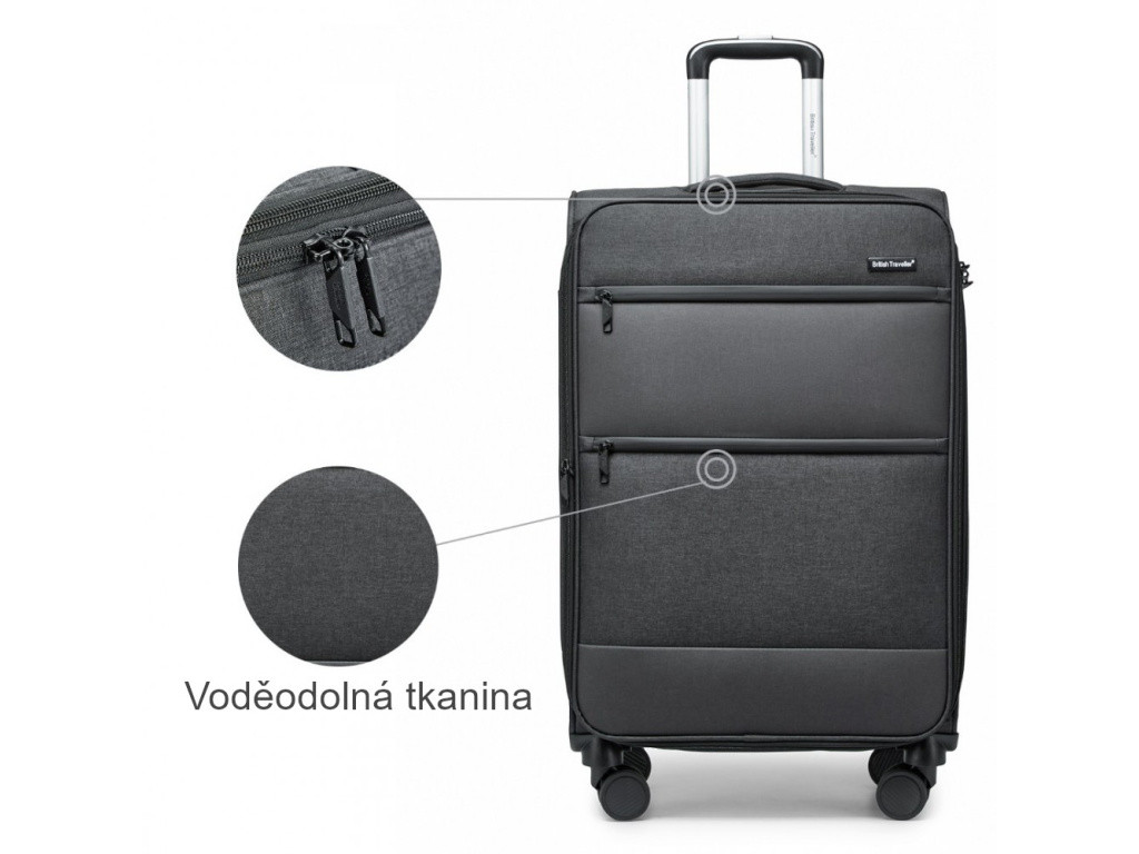 Látkový kufor značky BRITISH TRAVELLER. Ide o novú značku v našom sortimente, ktorá sa zameriava na výrobu batožiny z prémiových materiálov. Okrem kvalitného polypropylénu ponúka designovo zladené detaily na kufri ako zipsy, kolieska a madlá vo farbe lemovania, prípadne vo farbe kufra. Práve na týchto detailoch je rozoznateľná kvalita vypracovania batožiny.