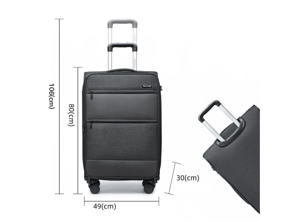 Kufor má prednú časť s dvoma zipsovými vreckami pre rýchly prístup k malým predmetom. Robustná hliníková teleskopická rukoväť a pohodlná horná rukoväť vám umožní ľahko zdvíhať a ovládať váš kufor.
