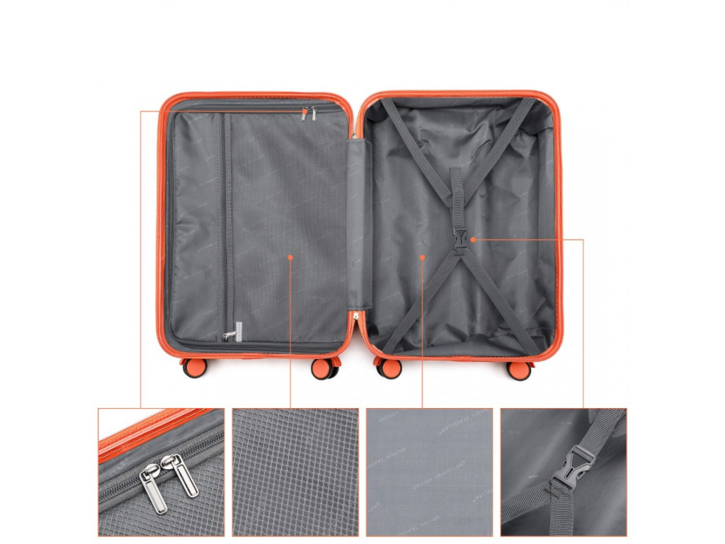 Kufor značky BRITISH TRAVELLER. Ide o novú značku v našom sortimente, ktorá sa zameriava na výrobu batožiny z prémiových materiálov. Ponúka designovo zladené detaily na kufri ako zipsy, kolieska a madlá vo farbe lemovania, prípadne vo farbe kufra. Práve na týchto detailoch je rozoznateľná kvalita vypracovania batožiny.