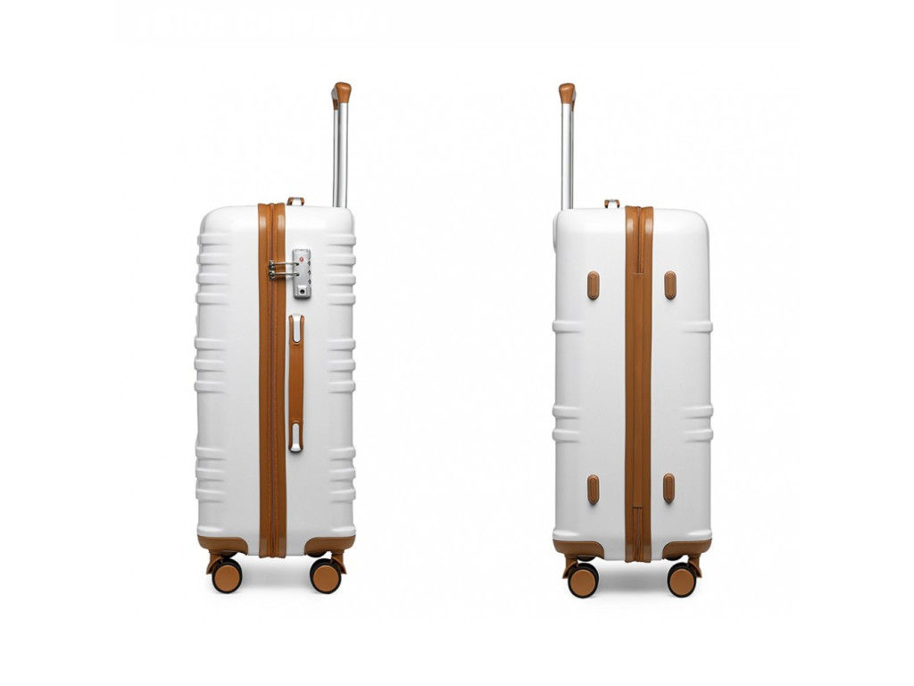 Kufor značky BRITISH TRAVELLER. Ide o novú značku v našom sortimente. Je vyrobený z materiálu ABS s hliníkovou výsuvnou rukoväťou a TSA číselným zámkom. Materiál ABS je pevný, ponúka odolnosť proti poškriabaniu a je vhodný do nízkych teplôt. Tento materiál nie je tak pružný ako polypropylén, ale pre nenáročné cesty je plne postačujúci.