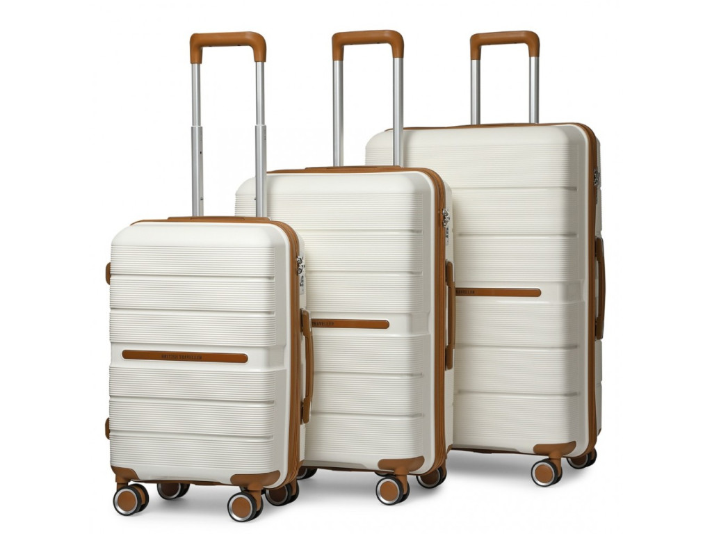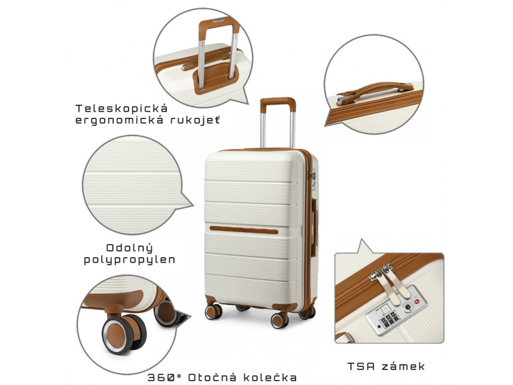 British Traveller K2392L Sada 3 Kuforov spinner 55cm 66cm 76cm Krémová Polypropylén