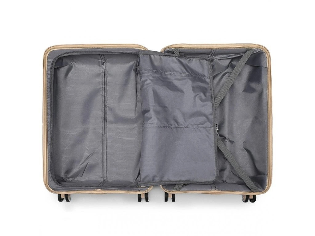 - Nylónové krížové popruhy pre upevnenie obsahu na jednej strane. Zipsom uzatvárateľná priehradka na druhej strane kufra, vrátane dvoch sieťovaných vreciek pre lepšiu organizáciu v kufri.