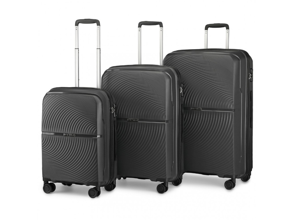 British Traveller K2393L Sada 3 kufre spinner 55cm 67cm 76cm Čierna Polypropylén