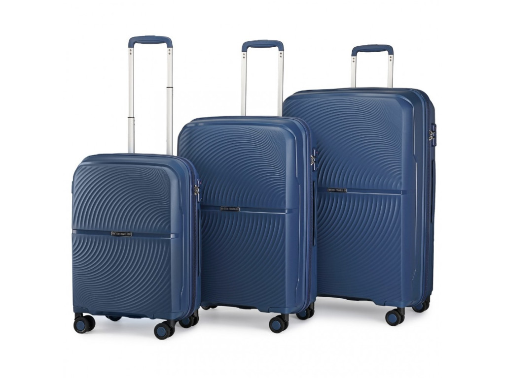 British Traveller K2393L Sada 3 kufre spinner 55cm 67cm 76cm Modrý Navy Polypropylén