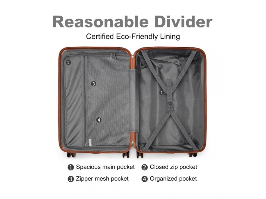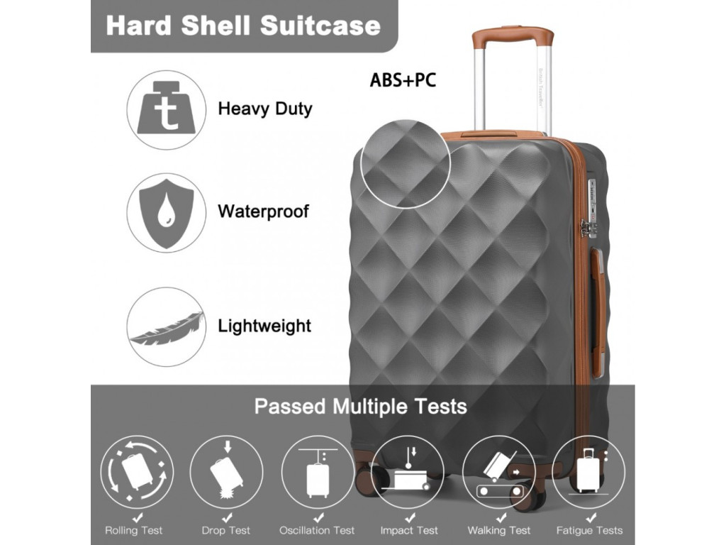 Kufre sú vyrobené z ABS, s tichými dvojitými kolieskami, hliníkovou výsuvnou rukoväťou a TSA číselným zámkom. ABS materiál ponúka odolnosť proti poškriabaniu a je vhodný do nízkych teplôt. ABS materiál nie je tak pružný ako polypropylén, ale na občasné cesty je úplne postačujúci.