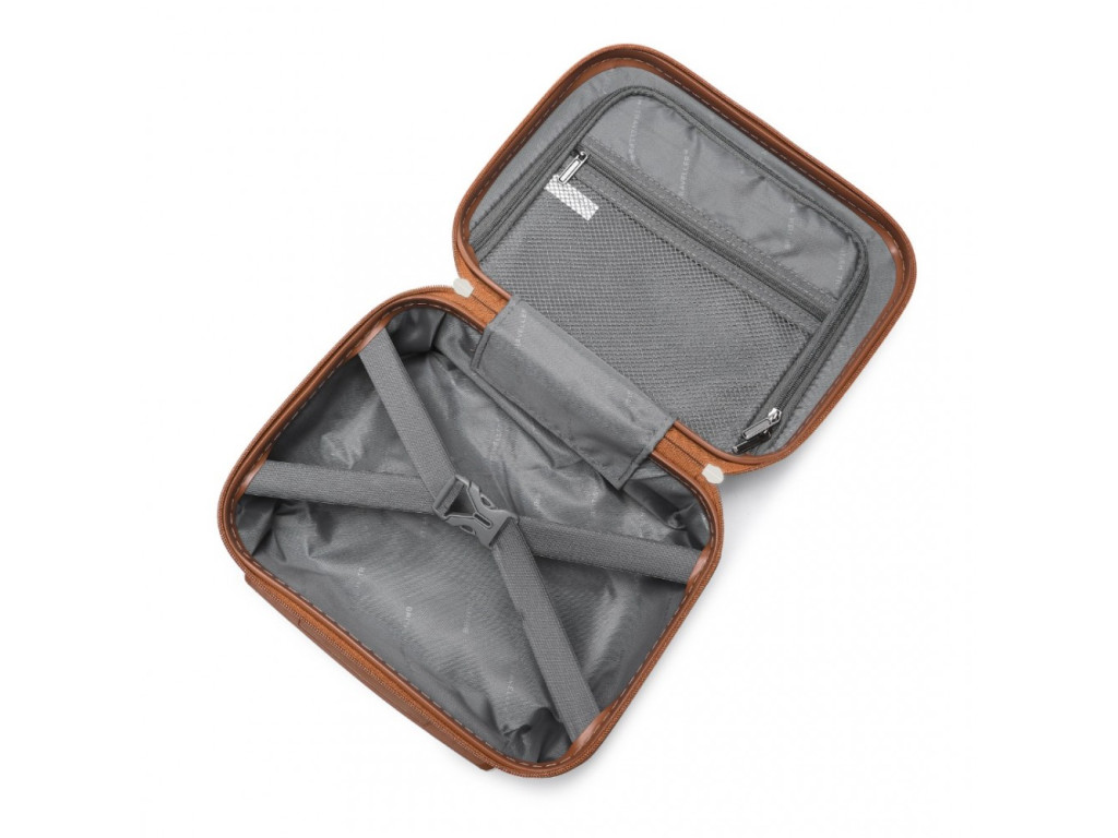 - Nylonové krížové popruhy na upevnenie obsahu na jednej strane a zipsom uzatvárateľná priehradka na druhej strane kufra