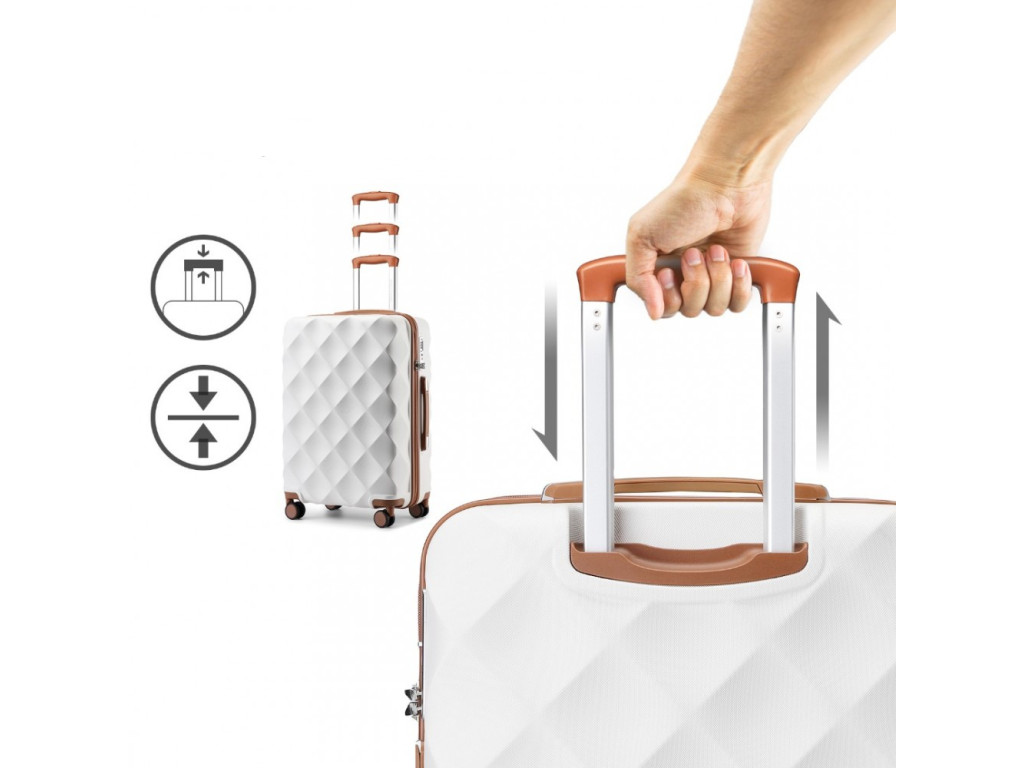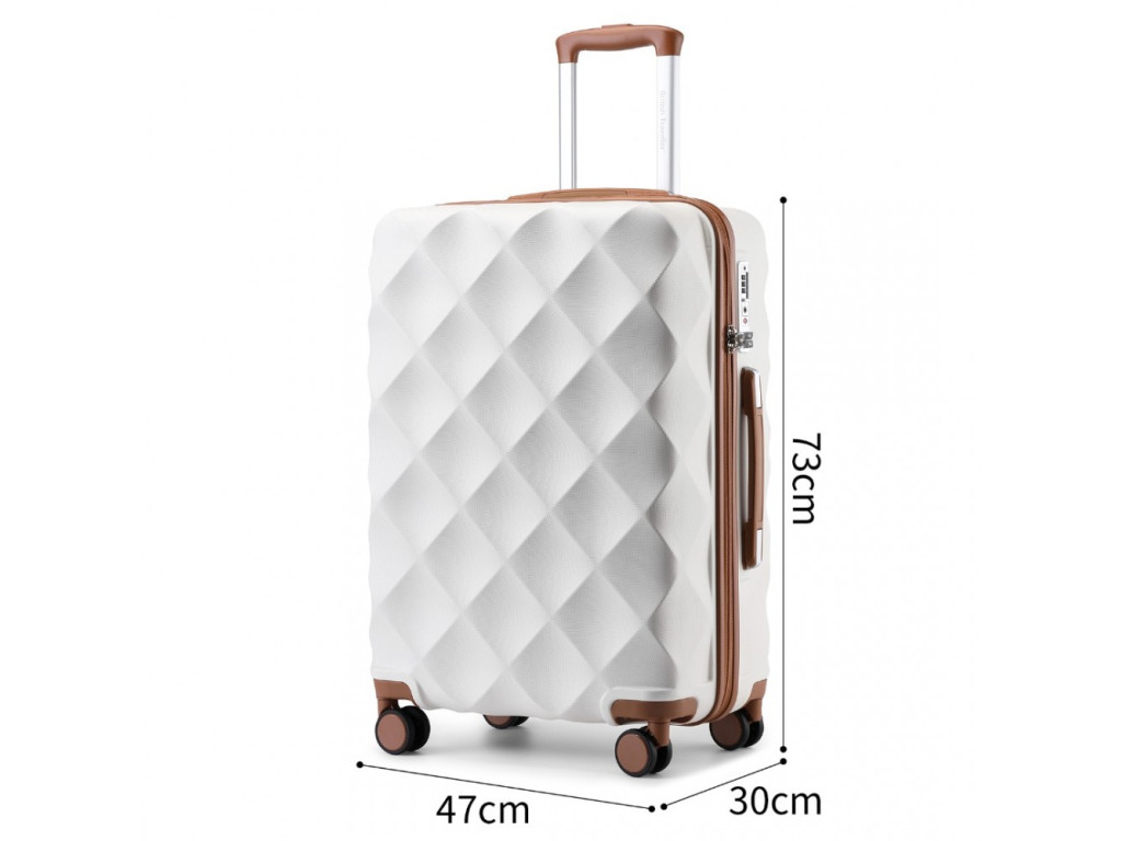 Kufor je vyrobený z polykarbonátovou vrstvou potiahnutým ABS s tichými dvojitými kolieskami, hliníkovou výsuvnou rukoväťou alebo TSA číselným zámkom. ABS materiál ponúka odolnosť proti poškriabaniu a je vhodný do nízkych teplôt. ABS materiál nie je tak pružný ako polypropylén, ale pre občasné cesty je plne postačujúci.