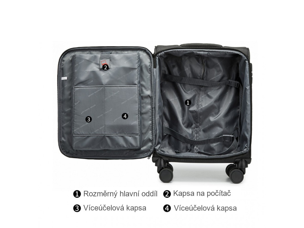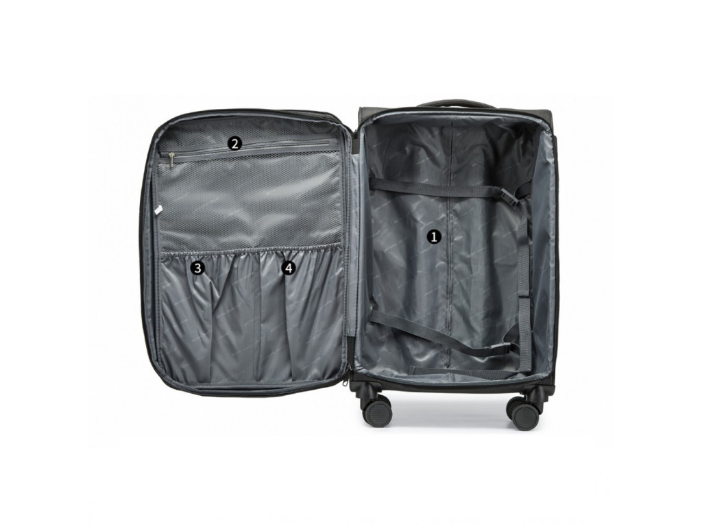Stredný a veľký kufor majú možnosť rozšírenia (expandér), ktorý pri rozopnutí navýši hĺbku kufra až o 3 cm a zvýši tak kapacitu úložného priestoru.