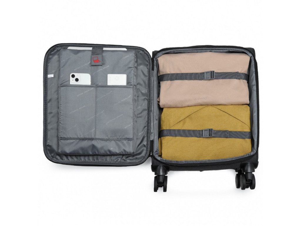 Palubný kufor je vybavený vreckom na počítač do veľkosti 15,6 palce.