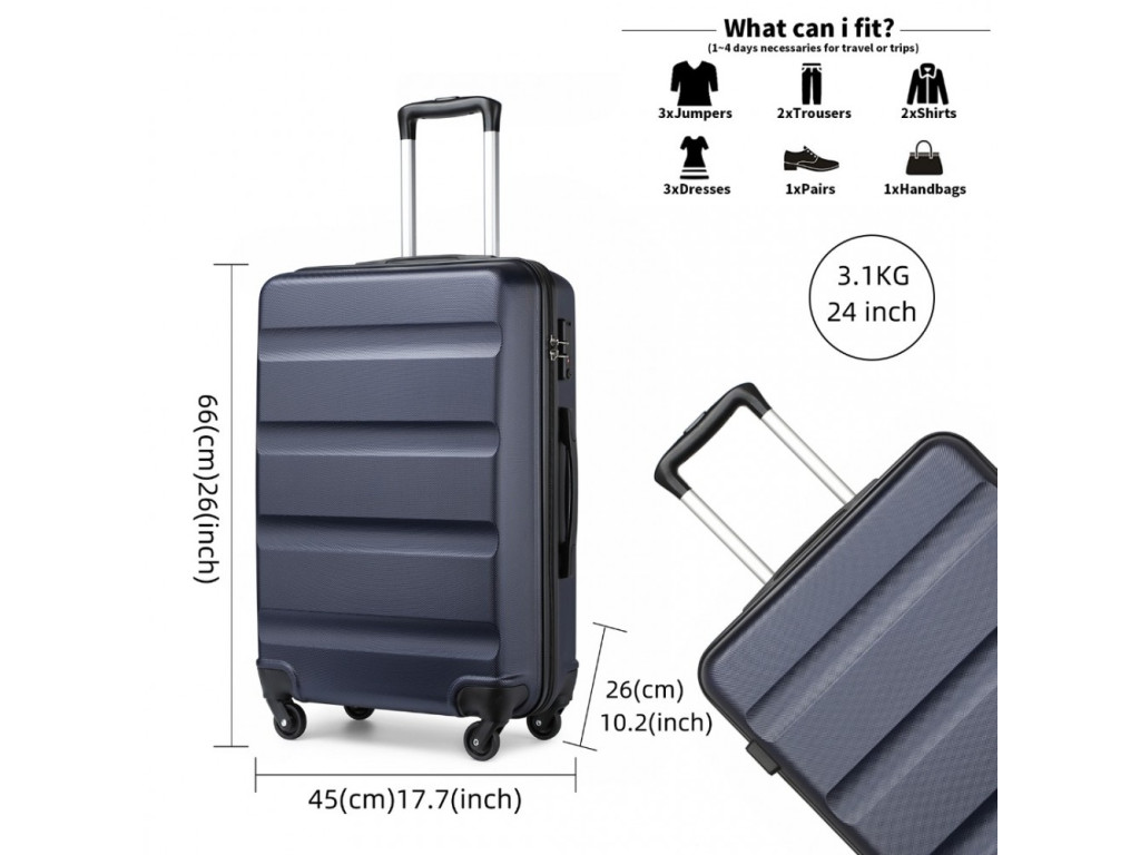 Sada obsahuje 3 kufre rôznych veľkostí - S, M a L - na cestovanie podľa potrieb balenia a aj dĺžky pobytu, Kabínový S kufor na víkendové alebo ľahšie týždňové cesty. Stredný M kufor na týždňové cesty a L kufor aj na dvojtýždňové dovolenky.