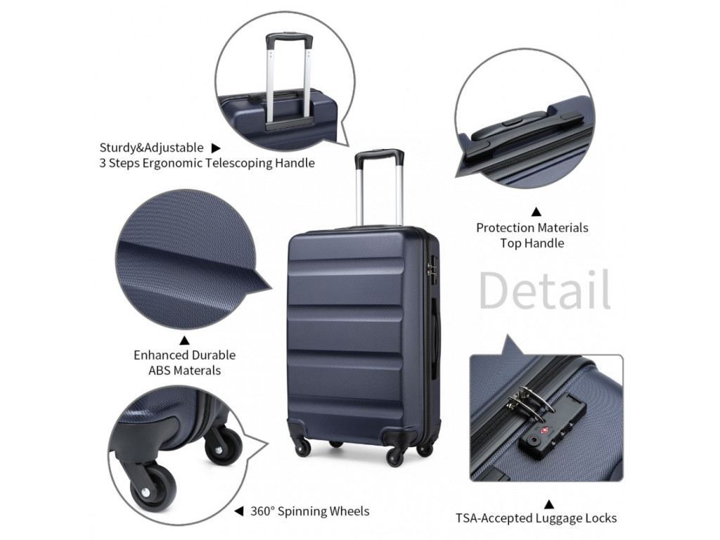 Kufre sú vyrobené z ABS s hliníkovou výsuvnou rukoväťou a TSA číselným zámkom. ABS materiál ponúka odolnosť proti poškriabaniu a je vhodný do nízkych teplôt. ABS materiál nie je tak pružný ako polypropylén, ale na občasné cesty je úplne postačujúci.