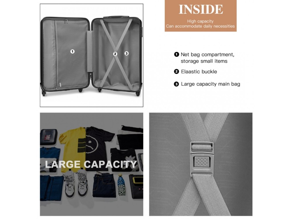 Kufre sú vyrobené z materiálu ABS s hliníkovou výsuvnou rukoväťou a TSA číselným zámkom. ABS materiál je pevný, ponúka odolnosť proti poškriabaniu a je vhodný do nízkych teplôt. Tento materiál nie je tak pružný ako polypropylén, ale pre nenáročné cesty je plne postačujúci.