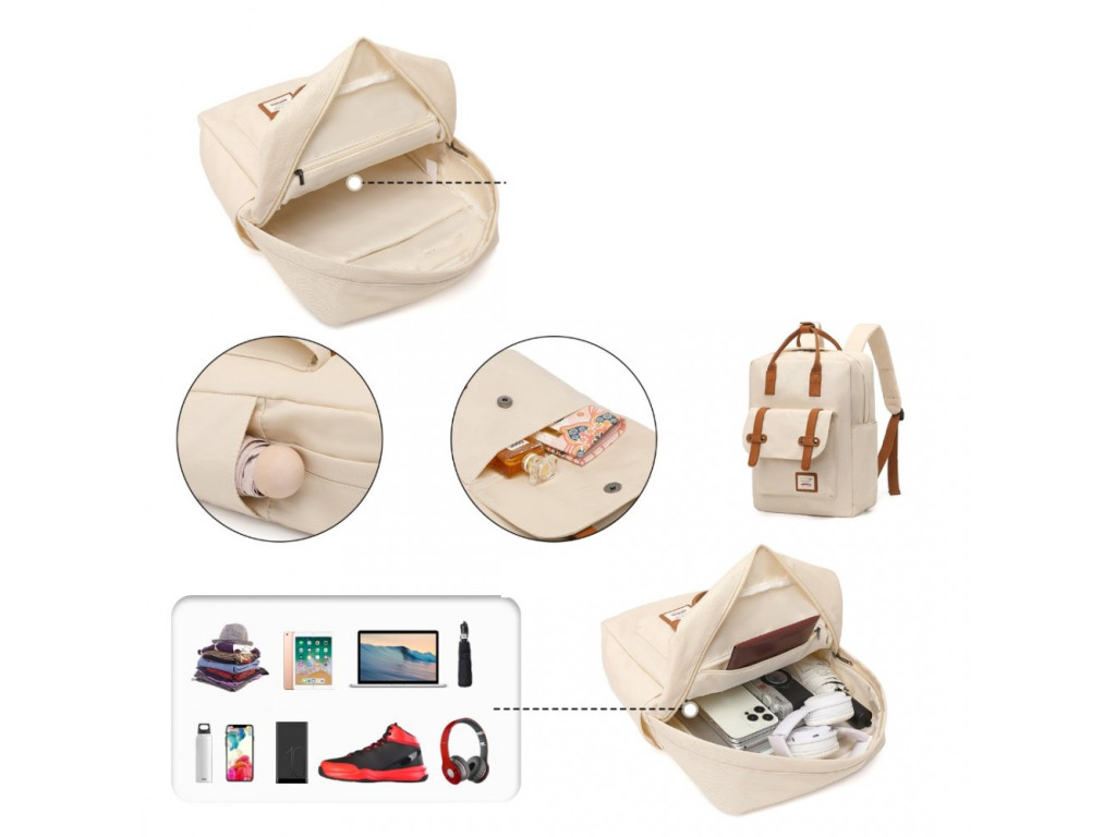 Ruksak je vyrobený z kvalitného vodoodolného materiálu, ktorý sa jednoducho čistí a má dlhú životnosť. Klasický design je vhodný na každodenné použitie. Vonkajší aj vnútorný materiál je z polyesteru. Priestor na notebook s uhlopriečkou do 14,1". Ruksak je vybavený vreckami na oboch stranách na fľašu, či dáždnik, predným vreckom s gombíkom pre rychly prístup, hlavným oddelením s dvojitým zipsom a zosilneným vreckom na notebook. Ramenné popruhy a zadná chrbtová časť ruksaku sú vystužené, a dá sa nosiť aj ako taška pomocou vrchných uší.