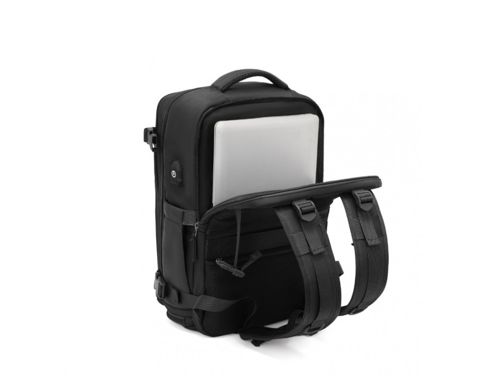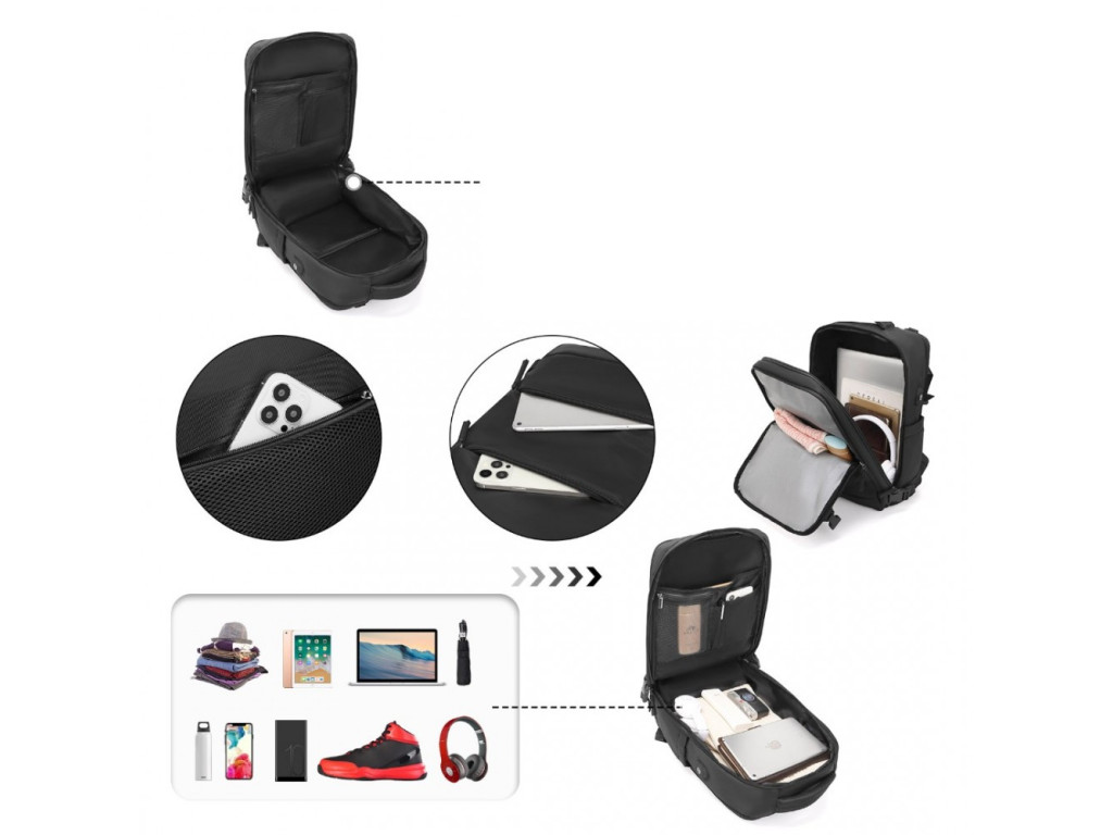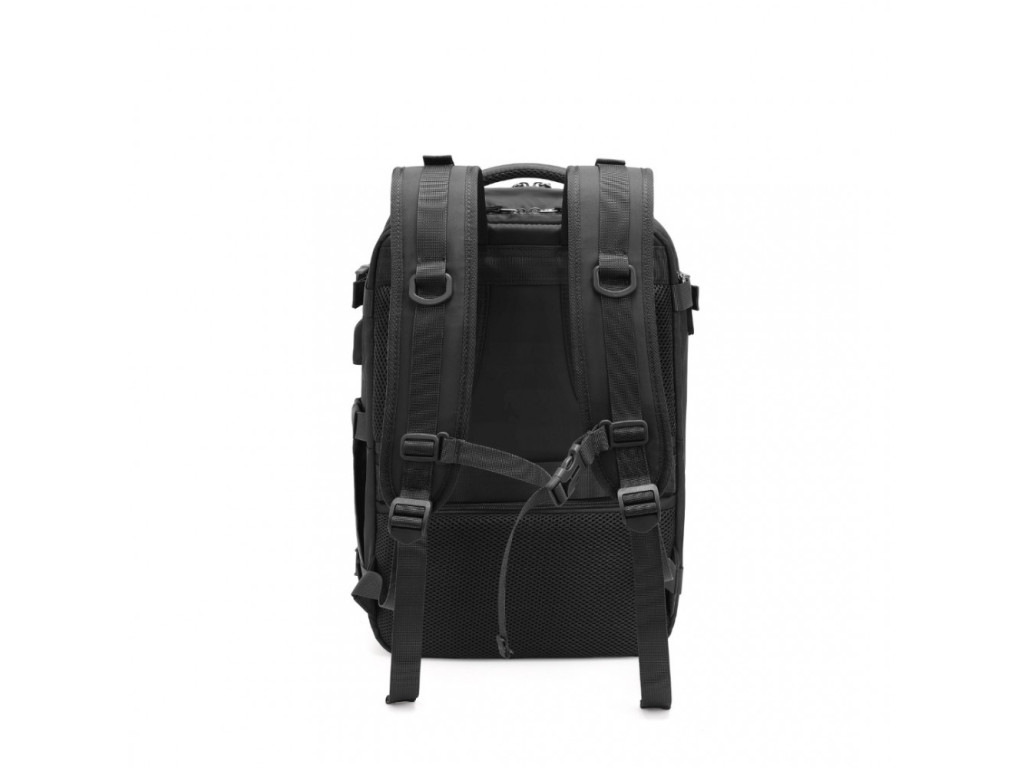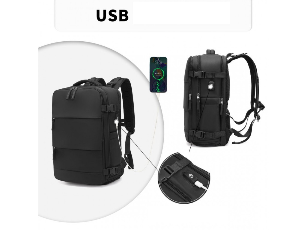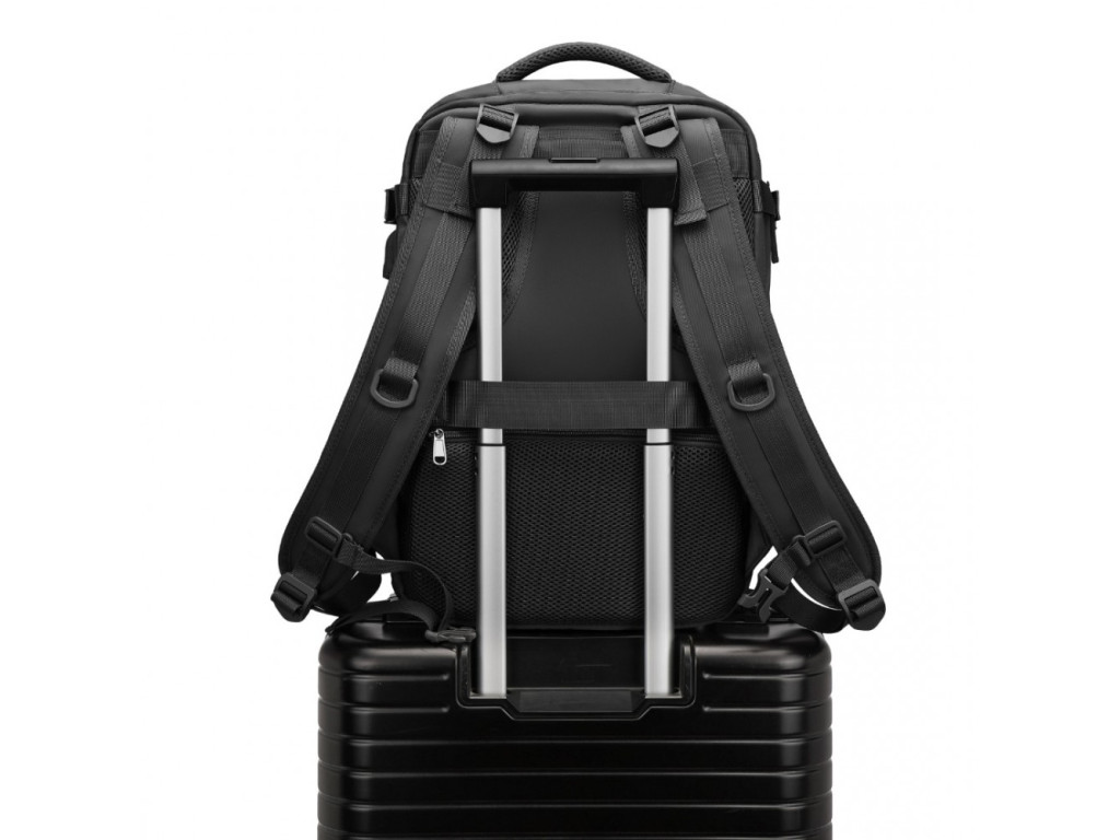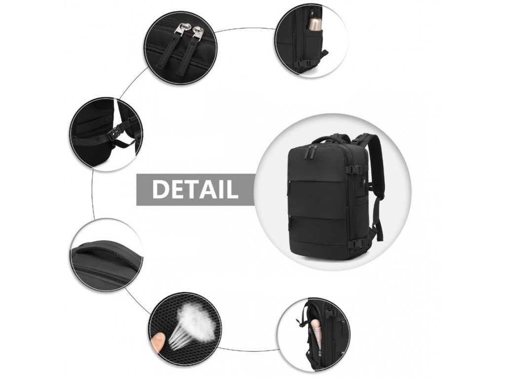 Tento cestovný ruksak je navrhnutý pre potreby moderného dubrodruha, ponúkajúci nielen dostatok úložného priestoru, ale aj doplnkové funkcie. Prístupnosť ku obsahu zaisťuje veľké zipsové otváranie, až na tri strany, vrchná časť je tak vyklopiteľná až ku dnu ruksaku. Rozmer ruksaku poskytuje okrem vecí, ktoré si so sebou ponesiete, dostatok priestoru na časopisy alebo dokumenty formátu A4, notebook s uhlopriečkou 15.6", a ďalšie elektronické príslušenstvo. Vnútorné priehradky a vrecká zabezpečia prehľad vo veciach. Vonkajšie vrecká uschovajú vaše doklady, mobil, peňaženku, kľúče a všetko, čo potrebujete mať príručne. Bočné vrecká slúžia na fľašu s vodou a dáždnik. Vonkajší materiál tvorí nylon, vnútrajšok je z polyesteru. Kovové doplnky sú v striebornom prevedení. Čistenie je možné jednoducho pomocou vlhkej handričky.