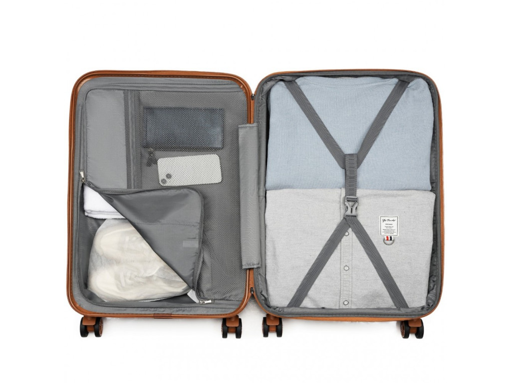 Kufre sú vyrobené z materiálu ABS/Polykarbonát s hliníkovou výsuvnou rukoväťou a TSA číselným zámkom. Materiál ABS/Polykarbonát je pevný, ponúka odolnosť proti poškriabaniu a je vhodný do nízkych teplôt. Tento materiál nie je tak pružný ako polypropylén, ale pre nenáročné cesty je plne postačujúci.