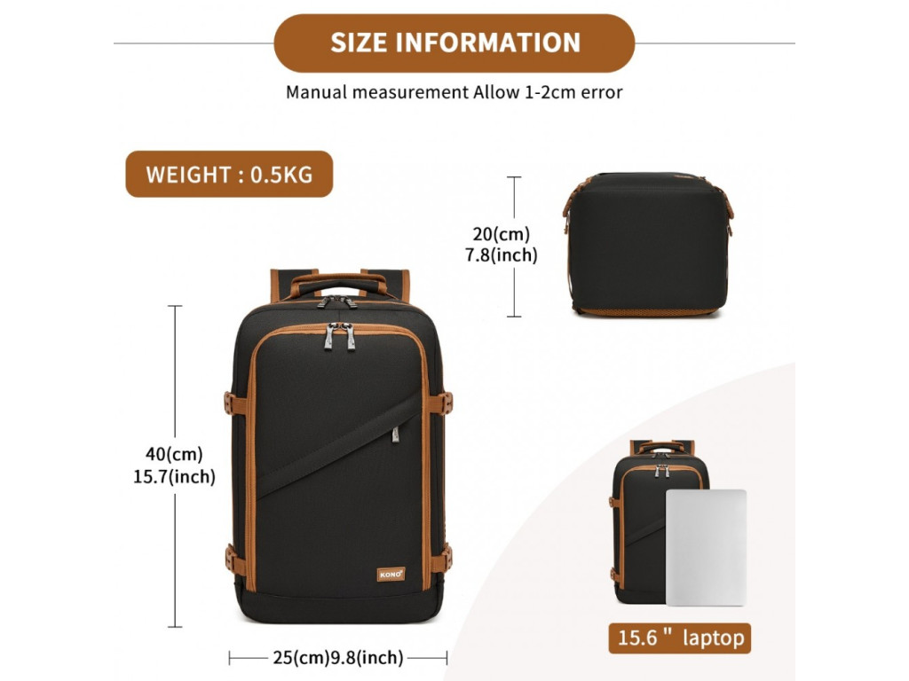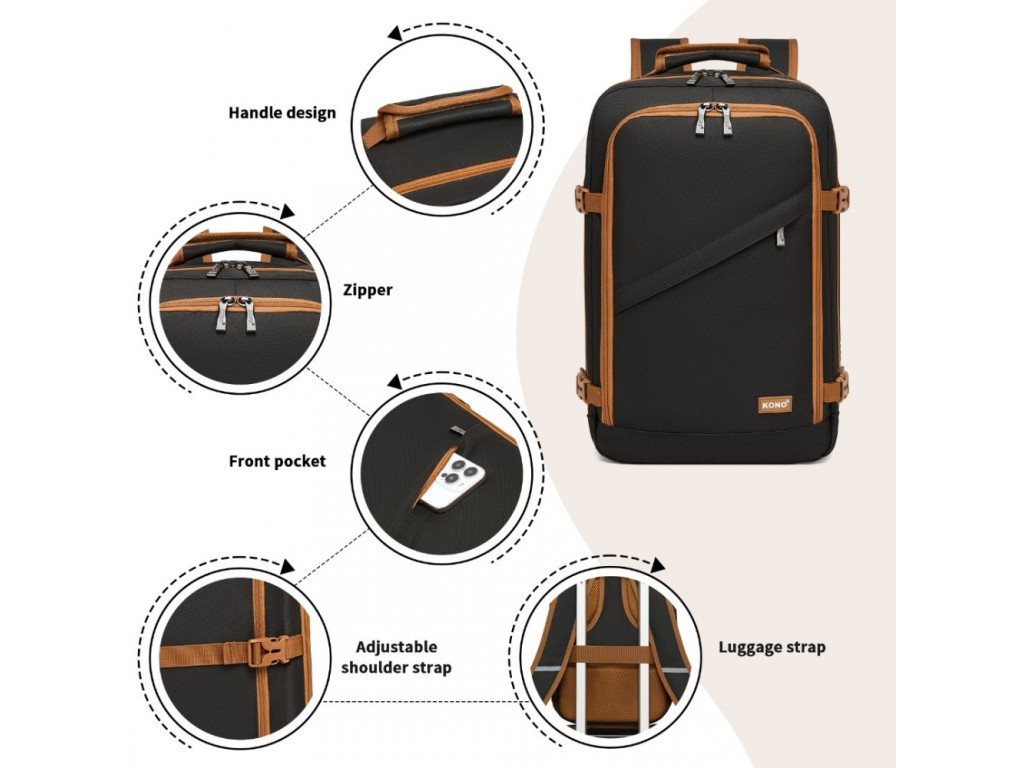 Batoh značky KONO vhodný ako príručná batožina pre väčšinu nízkonákladových spoločností. KONO ponúka kvalitné batožiny a batohy za dostupné ceny. Táto značka je veľmi známa v Západnej Európe pre optimálnu kombináciu ceny a výkonu. Od svojho vzniku sa zameriava na segment strednej triedy.