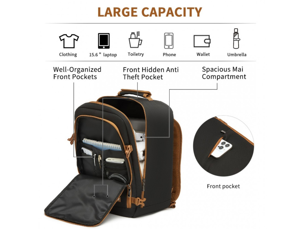 KONO 2531S Batoh na notebook 15.6" Čierna/Hnedá 40cm 20L