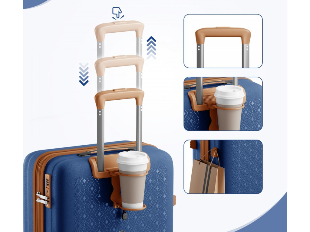 Kolekcia kufrov KONO 2594 spája moderný dizajn s praktickými detailmi, ktoré ocení každý cestovateľ. Odolná škrupina z ľahkého polypropylénu chráni obsah pred poškodením, zatiaľ čo rozšíriteľný zips ponúka viac priestoru, keď je to potrebné. Samozrejmosťou je bezpečný TSA zámok, ktorý uľahčuje cestovanie aj na medzinárodných letiskách. Zaujímavým doplnkom je integrovaný držiak na nápoj, vďaka ktorému budete mať svoju kávu či fľašu vody vždy po ruke. Uvnitř nájdete premyslené usporiadanie s priehradkami a popruhmi pre jednoduchú organizáciu. Tiché kolieska a pohodlné madlo potom zabezpečujú, že cestovanie s týmto kufrom je skutočne komfortné.