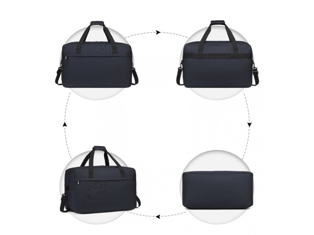 Cestovná taška na rameno značky KONO. Je to textilná (z látky Oxford), praktická a ľahká taška. Vnútorná podšívka je z polyesteru. Uši tašky a ramenný popruh je z odolného nylónu.