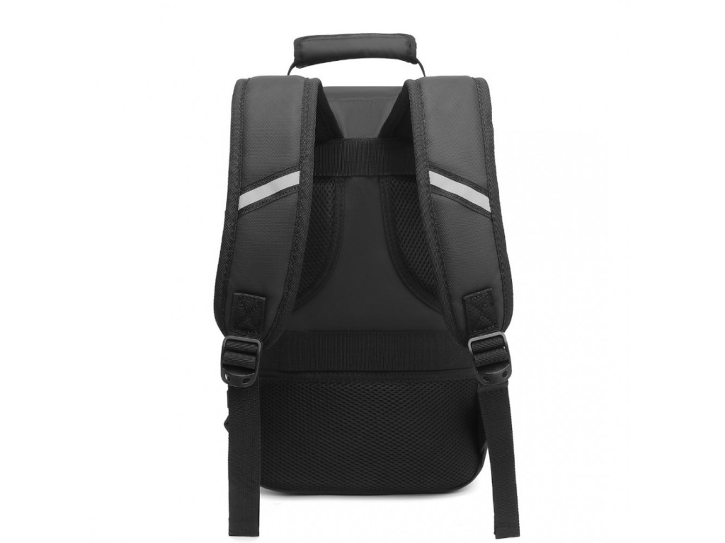 Predná kapsa s vyhradenou priehradkou pre notebook, dvoma vkládacími kapsami, dvoma slotmi na perá a jednou sieťovanou kapsou na zips pre jednoduchú organizáciu.