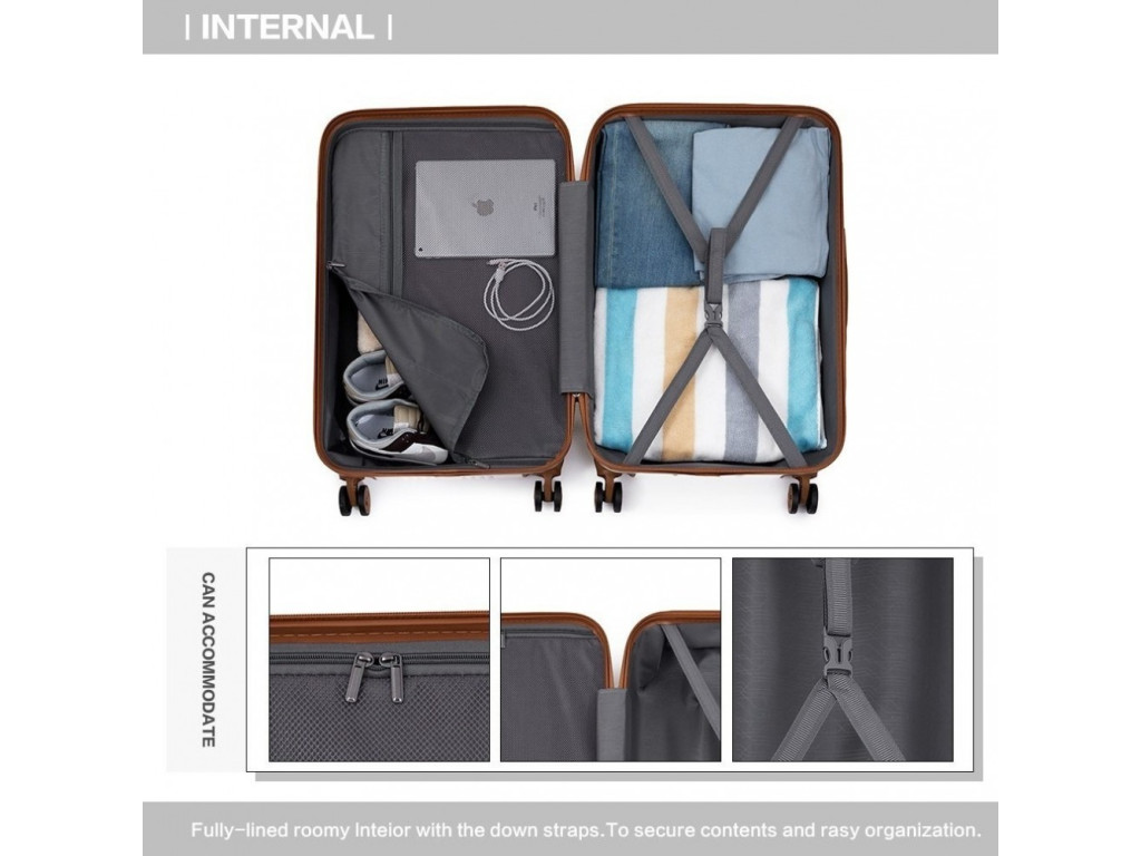 Kufre sú vyrobené z ABS materiálu s hliníkovou výsuvnou rukoväťou a TSA číselným zámkom. ABS materiál ponúka odolnosť proti poškriabaniu a je vhodný do nízkych teplôt. ABS materiál nie je tak pružný ako polypropylén, ale na občasné cesty je úplne postačujúci.