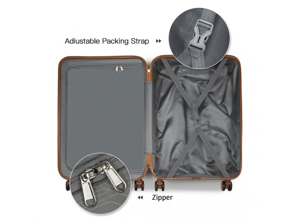 Vyrobený z ABS s tichými dvojitými kolieskami, hliníkovou výsuvnou rukoväťou alebo TSA číselným zámkom. ABS materiál ponúka odolnosť proti poškriabaniu a je vhodný do nízkych teplôt. ABS materiál nie je tak pružný ako polypropylén, ale pre občasné cesty je plne postačujúci.