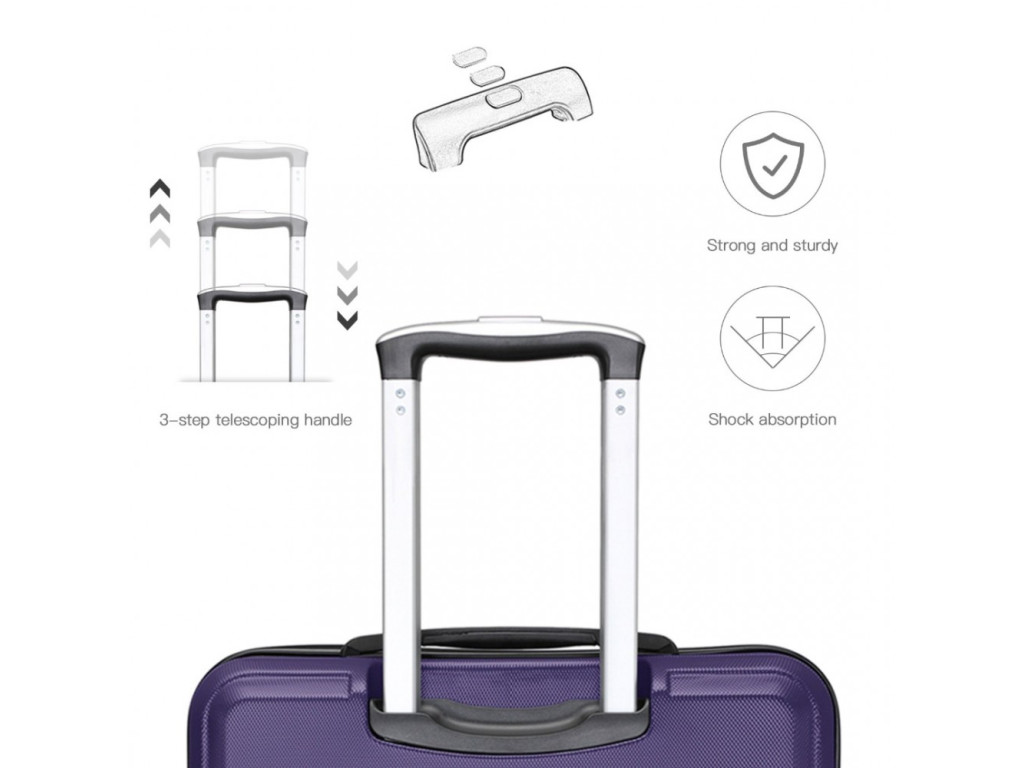 Vyrobený z ABS s tichými dvojitými kolieskami, hliníkovou výsuvnou rukoväťou alebo TSA číselným zámkom. ABS materiál ponúka odolnosť proti poškriabaniu a je vhodný do nízkych teplôt. ABS materiál nie je tak pružný ako polypropylén, ale pre občasné cesty je plne postačujúci.