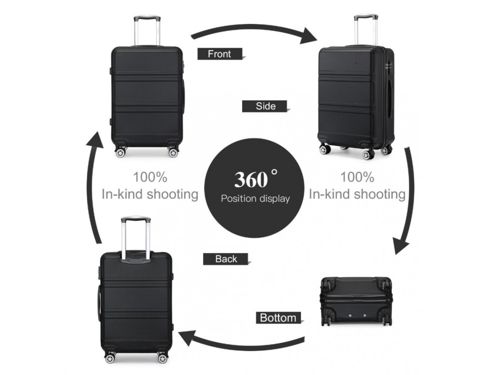 Vyrobený z ABS s tichými dvojitými kolieskami, hliníkovou výsuvnou rukoväťou alebo TSA číselným zámkom. ABS materiál ponúka odolnosť proti poškriabaniu a je vhodný do nízkych teplôt. ABS materiál nie je tak pružný ako polypropylén, ale pre občasné cesty je plne postačujúci.