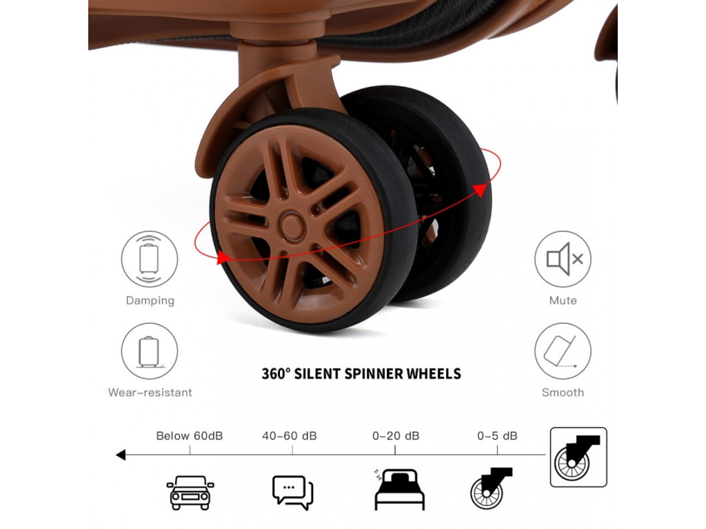 Vyrobený z ABS s tichými dvojitými kolieskami, hliníkovou výsuvnou rukoväťou alebo TSA číselným zámkom. ABS materiál ponúka odolnosť proti poškriabaniu a je vhodný do nízkych teplôt. ABS materiál nie je tak pružný ako polypropylén, ale pre občasné cesty je plne postačujúci.