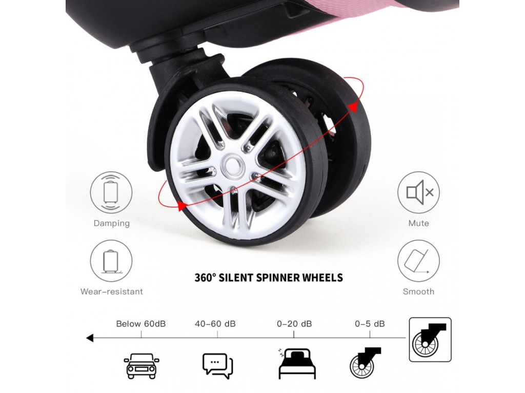 Vyrobený z ABS s tichými dvojitými kolieskami, hliníkovou výsuvnou rukoväťou alebo TSA číselným zámkom. ABS materiál ponúka odolnosť proti poškriabaniu a je vhodný do nízkych teplôt. ABS materiál nie je tak pružný ako polypropylén, ale pre občasné cesty je plne postačujúci.