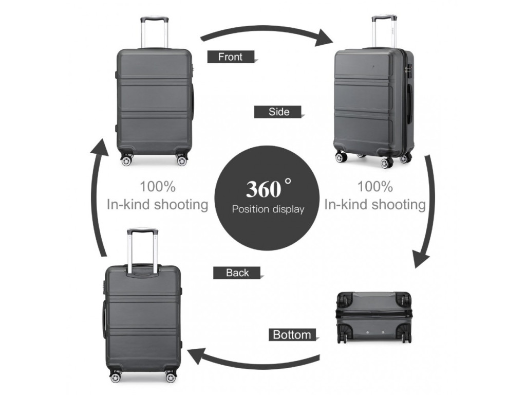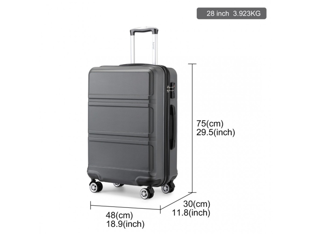 Vyrobený z ABS s tichými dvojitými kolieskami, hliníkovou výsuvnou rukoväťou alebo TSA číselným zámkom. ABS materiál ponúka odolnosť proti poškriabaniu a je vhodný do nízkych teplôt. ABS materiál nie je tak pružný ako polypropylén, ale pre občasné cesty je plne postačujúci.