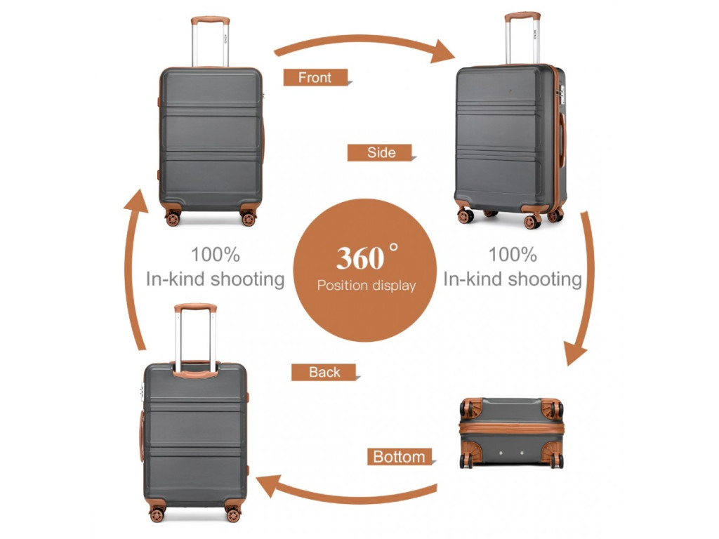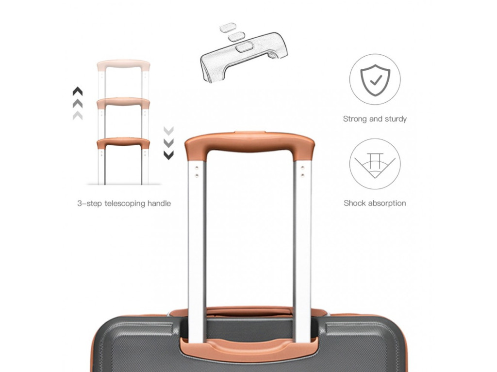 Vyrobený z ABS s tichými dvojitými kolieskami, hliníkovou výsuvnou rukoväťou alebo TSA číselným zámkom. ABS materiál ponúka odolnosť proti poškriabaniu a je vhodný do nízkych teplôt. ABS materiál nie je tak pružný ako polypropylén, ale pre občasné cesty je plne postačujúci.