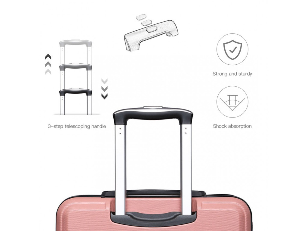 Vyrobený z ABS s tichými dvojitými kolieskami, hliníkovou výsuvnou rukoväťou alebo TSA číselným zámkom. ABS materiál ponúka odolnosť proti poškriabaniu a je vhodný do nízkych teplôt. ABS materiál nie je tak pružný ako polypropylén, ale pre občasné cesty je plne postačujúci.