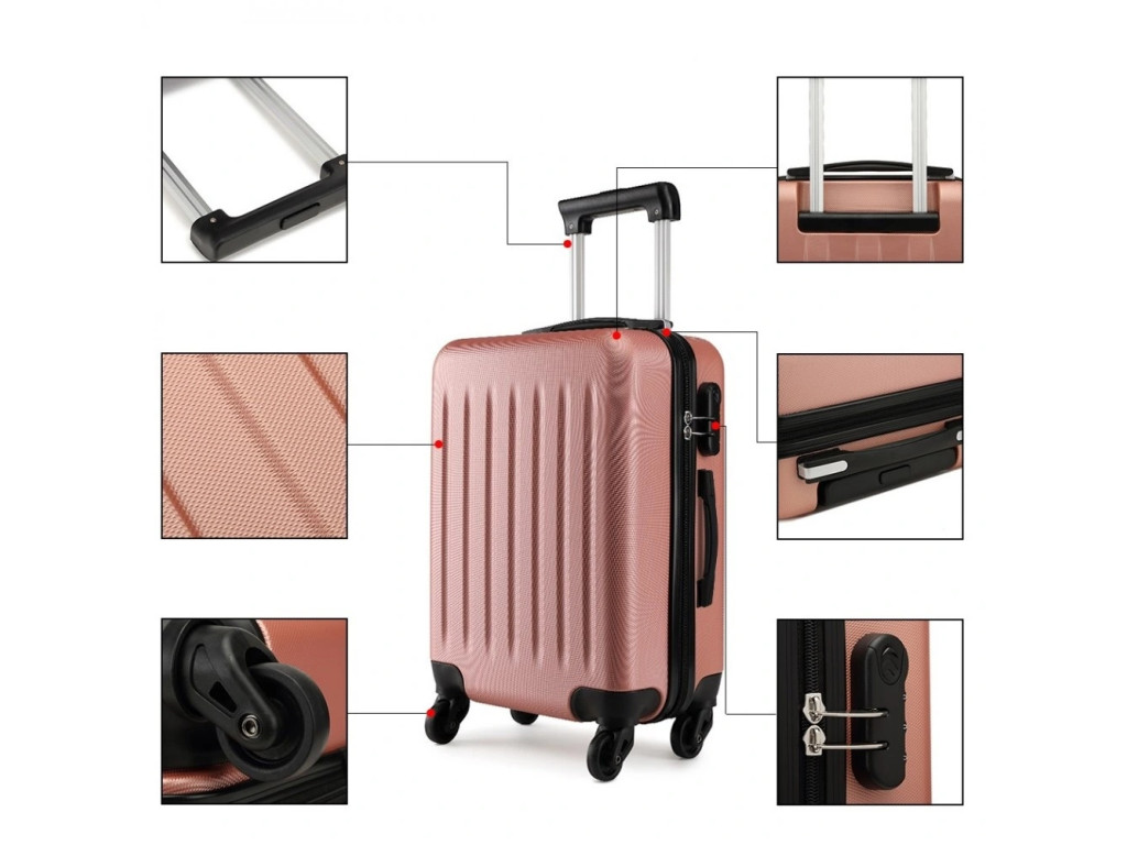 Kufre sú vyrobené z materiálu ABS s hliníkovou výsuvnou rukoväťou a TSA číselným zámkom. Materiál ABS je pevný, ponúka odolnosť proti poškriabaniu a je vhodný do nízkych teplôt. Tento materiál nie je tak pružný ako polypropylén, ale pre nenáročné cesty je plne postačujúci.