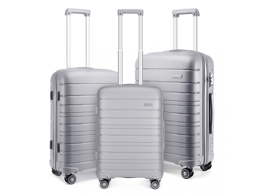 Kono K2091L Sada 3 kufre spinner 55cm 65cm 76cm Sivá Polypropylén