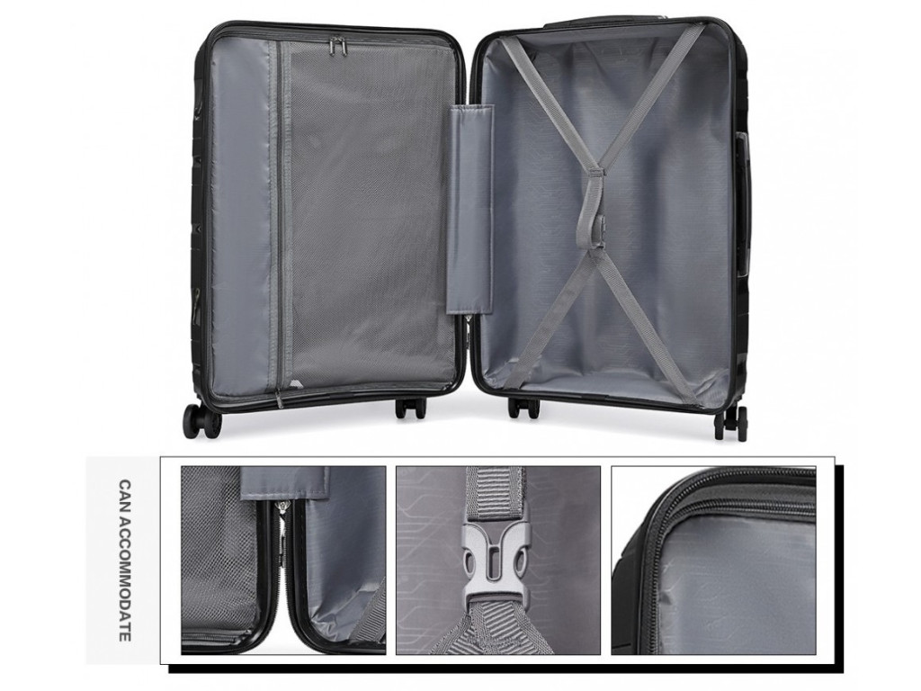 Vyrobený z kvalitného polypropylénu s tichými dvojitými kolieskami, hliníkovou výsuvnou rukoväťou a TSA číselným zámkom. Medzi hlavnými výhodami polypropylénu je výborná použiteľnosť pri cestovaní lietadlom. Polypropylén je odolný proti prasknutiu a pri nárazoch sa vráti do pôvodného tvaru. Naproti tomu kufre vyrobené z ABS sú náchylné na praskanie pri mechanickom pôsobení síl.