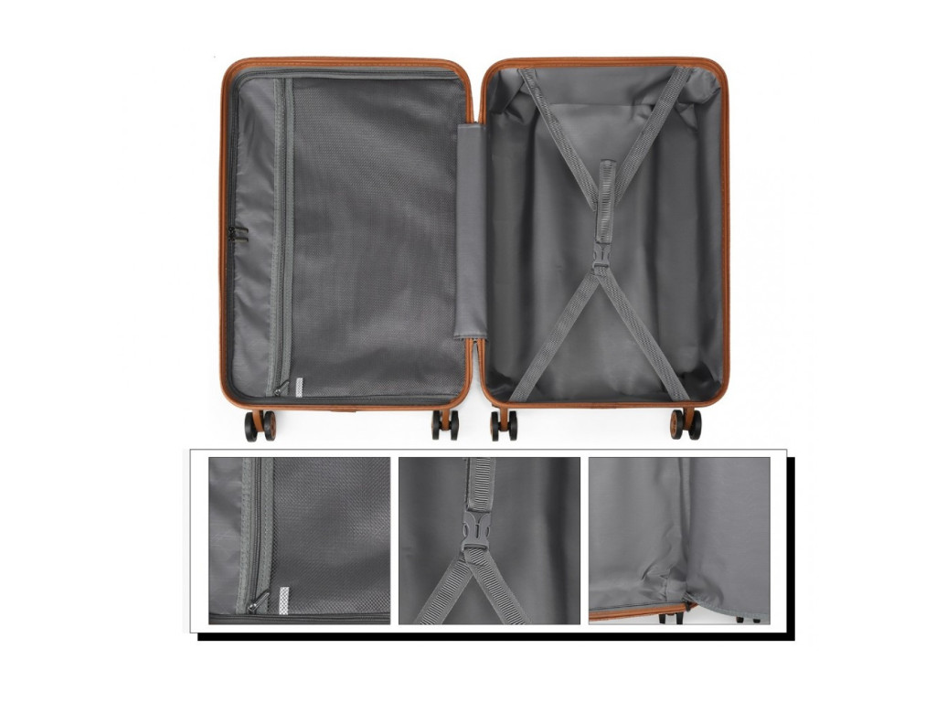 - Nylonové krížové popruhy pre upevnenie obsahu na jednej strane a zipsom uzatvárateľná priehradka na druhej strane kufra