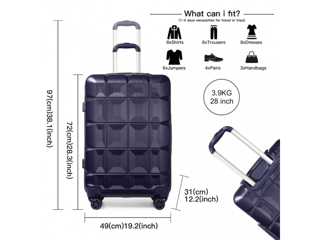 Je vyrobený z ABS, s tichými dvojitými kolieskami, hliníkovou výsuvnou rukoväťou alebo TSA číselným zámkom. ABS materiál ponúka odolnosť proti poškriabaniu a je vhodný do nízkych teplôt. Nie je síce natoľko pružný ako polypropylén, ale pre občasné cesty je celkom postačujúci.