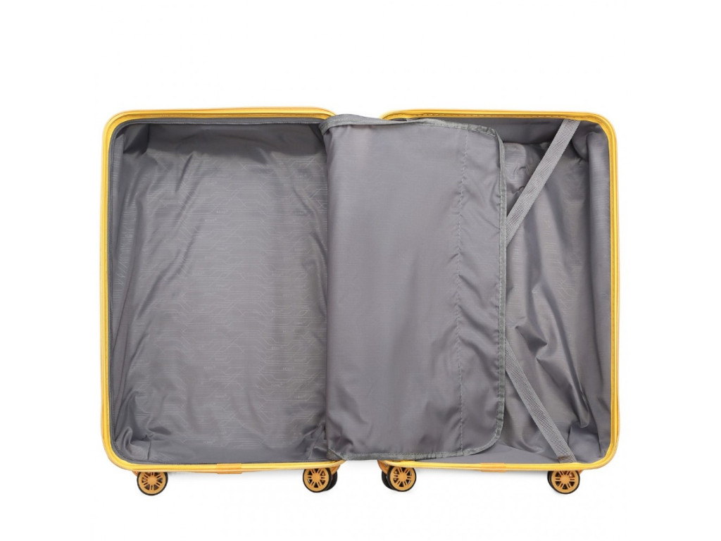 - Nylonové krížové popruhy pre upevnenie obsahu na jednej strane a zipsom uzatvárateľná priehradka na druhej strane kufra