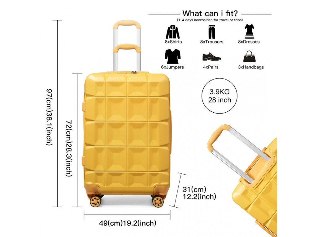 Je vyrobený z ABS, s tichými dvojitými kolieskami, hliníkovou výsuvnou rukoväťou alebo TSA číselným zámkom. ABS materiál ponúka odolnosť proti poškriabaniu a je vhodný do nízkych teplôt. Nie je síce natoľko pružný ako polypropylén, ale pre občasné cesty je celkom postačujúci.