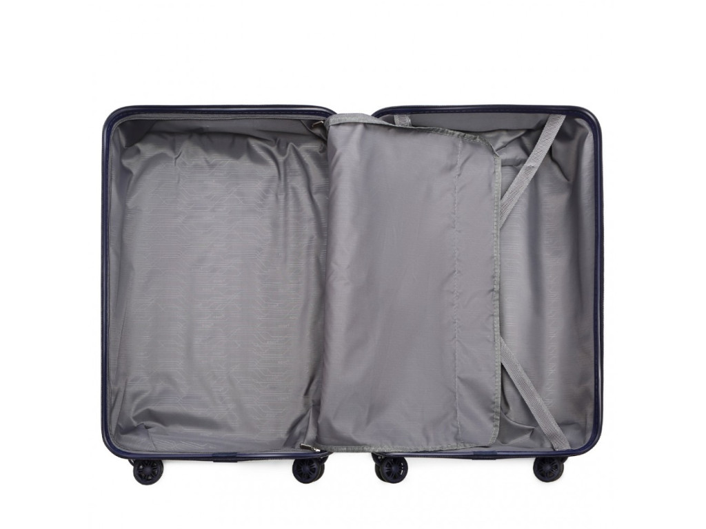 - Nylonové krížové popruhy na upevnenie obsahu na jednej strane a zipsom uzatvárateľná priehradka na druhej strane kufra