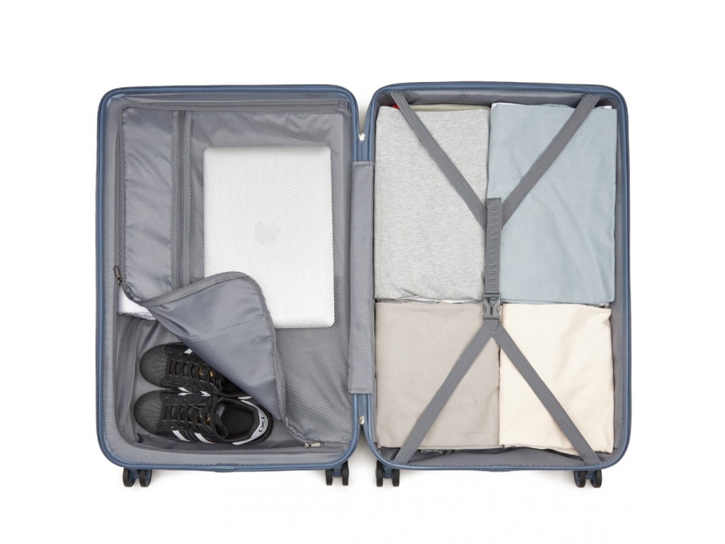 - Nylonové krížové popruhy pre upevnenie obsahu na jednej strane a zipsom uzatváraná priehradka na druhej strane kufra