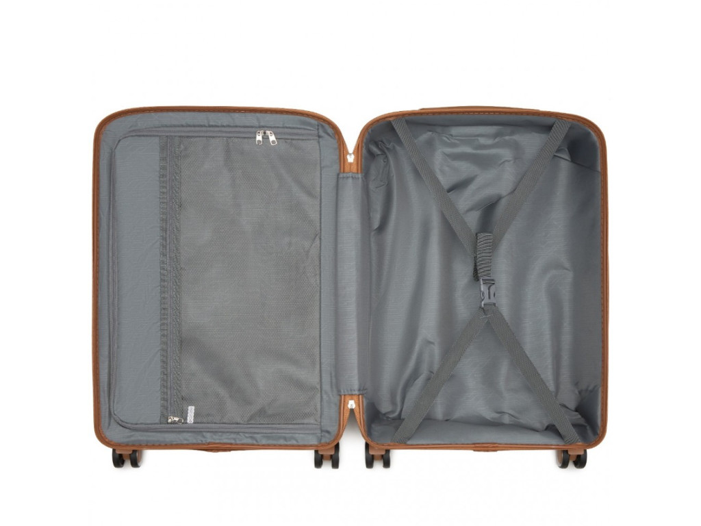 - Nylonové krížové popruhy pre upevnenie obsahu na jednej strane a zipsom uzatváraná priehradka na druhej strane kufra